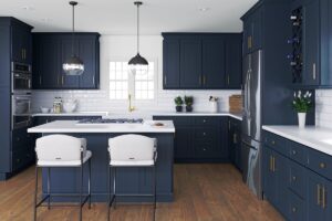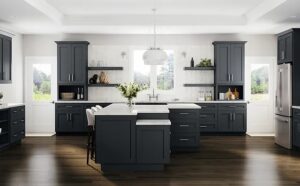 Glass-Front Cabinets: Glass-front cabinets offer an elegant and sophisticated touch to kitchen design. They provide a platform to display your cherished china or decorative pieces, adding a touch of glamour. Perfect for kitchens with abundant natural light, glass-front cabinets contribute to an open and luminous ambiance while showcasing your favorite items and creating a visually stunning focal point in your culinary space.